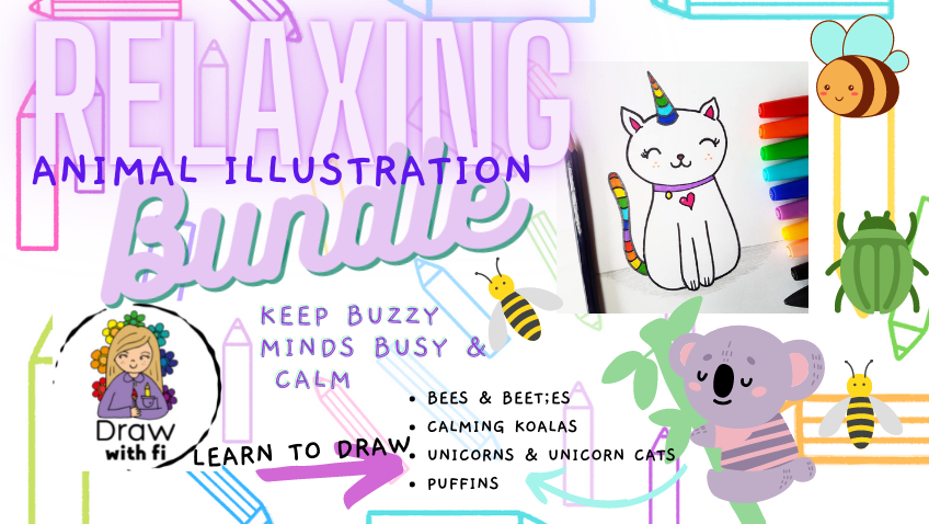 Learn to draw cute animal illustrations in this relaxing 4-part course. Suitable for children + ideal to create quiet, calm moments as a whole family.